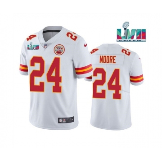 >Men's Kansas City Chiefs #24 Skyy Moore White Super Bowl LVII Patch Vapor Untouchable Limited Stitched Jersey
