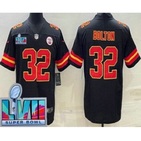 >Men's Kansas City Chiefs #32 Nick Bolton Limited Black Super Bowl LVII Vapor Jersey