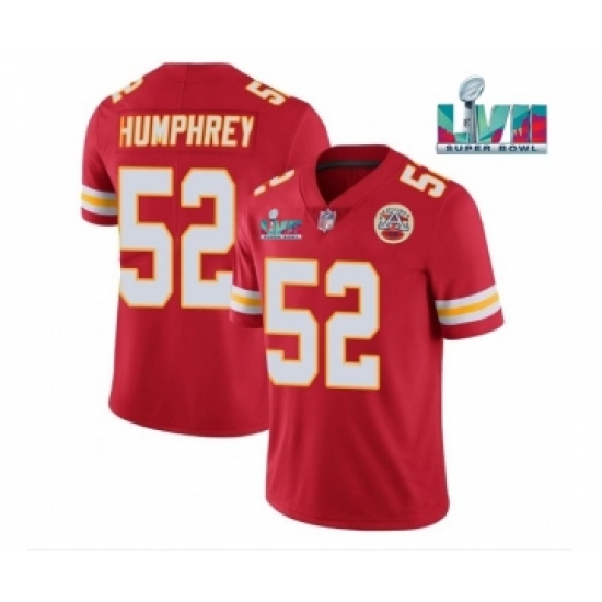 >Men’s Kansas City Chiefs #52 Creed Humphrey Red Super Bowl LVII Patch Vapor Untouchable Limited Stitched Jersey