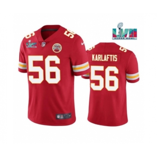 >Men's Kansas City Chiefs #56 George Karlaftis Red Super Bowl LVII Patch Vapor Untouchable Limited Stitched Jersey