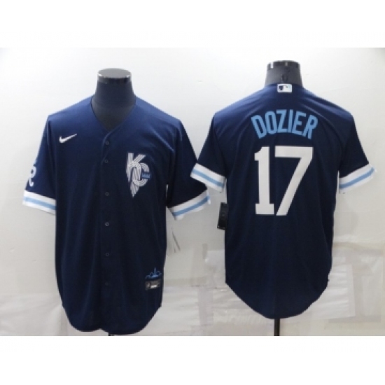 Men's Kansas City Royals #17 Hunter Dozier 2022 Navy Blue City Connect Cool Base Stitched Jersey
