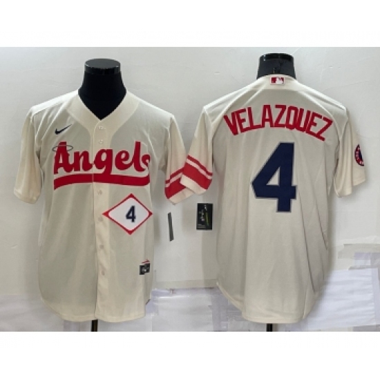 Men's Los Angeles Angels #4 Andrew Velazquez Number Cream 2022 City Connect Cool Base Stitched Jersey