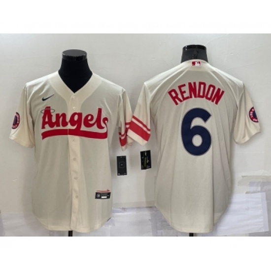 >Men's Los Angeles Angels #6 Anthony Rendon Cream 2022 City Connect Cool Base Stitched Jersey