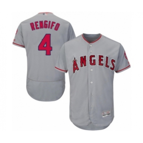 >Men's Los Angeles Angels of Anaheim #4 Luis Rengifo Grey Road Flex Base Authentic Collection Baseball Player Jersey