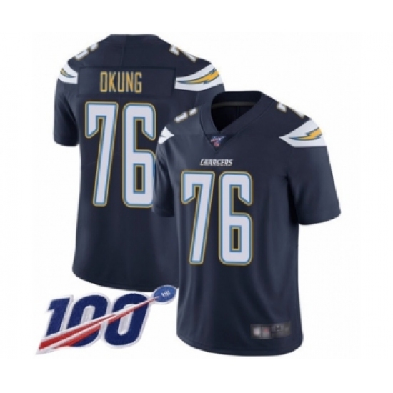 >Men's Los Angeles Chargers #76 Russell Okung Navy Blue Team Color Vapor Untouchable Limited Player 100th Season Football Jersey
