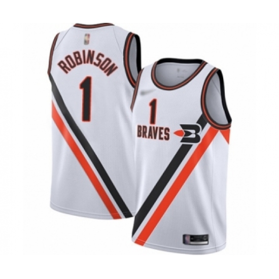 >Men's Los Angeles Clippers #1 Jerome Robinson Swingman White Hardwood Classics Finished Basketball Jersey