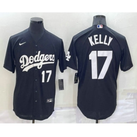 >Men's Los Angeles Dodgers #17 Joe Kelly Number Black Turn Back The Clock Stitched Cool Base Jersey