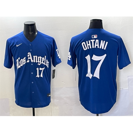 >Men's Los Angeles Dodgers #17 Shohei Ohtani Blue 2025 LA Gothic Style With Fernando Vapor Premier Limited Stitched Baseball Jersey