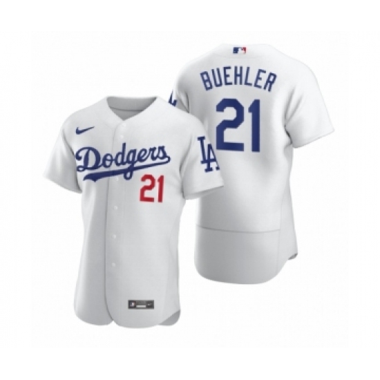 >Men's Los Angeles Dodgers #21 Walker Buehler Nike White 2020 Authentic Jersey