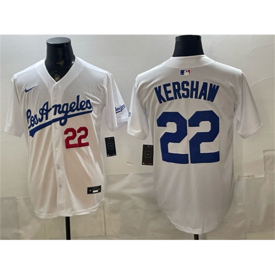 Men's Los Angeles Dodgers #22 Clayton Kershaw White Alternate Stadium Stitched Baseball Jersey