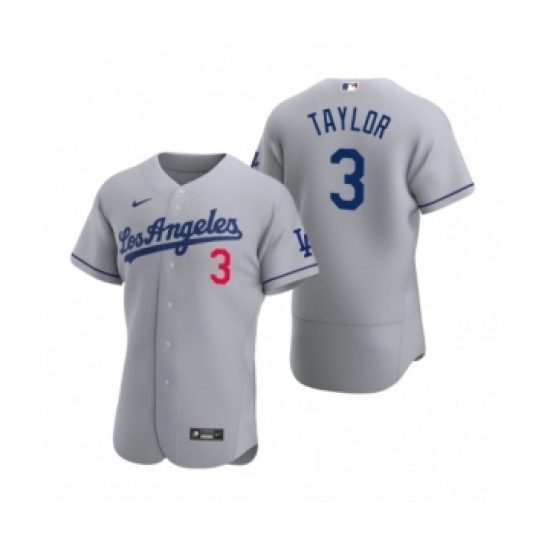 Men's Los Angeles Dodgers #3 Chris Taylor Nike Gray Authentic 2020 Road Jersey