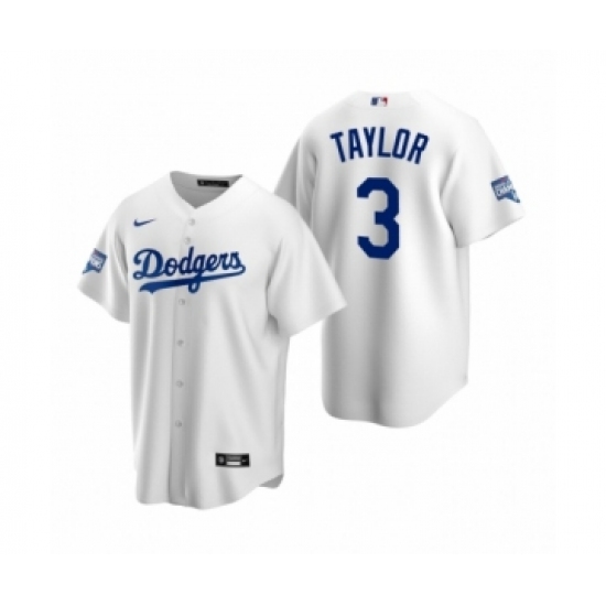 Men's Los Angeles Dodgers #3 Chris Taylor White 2020 World Series Champions Replica Jersey