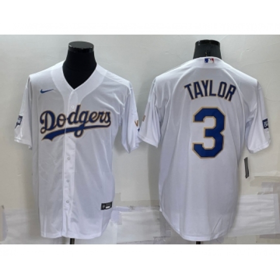 Men's Los Angeles Dodgers #3 Chris Taylor White Gold Championship Stitched MLB Cool Base Nike Jersey