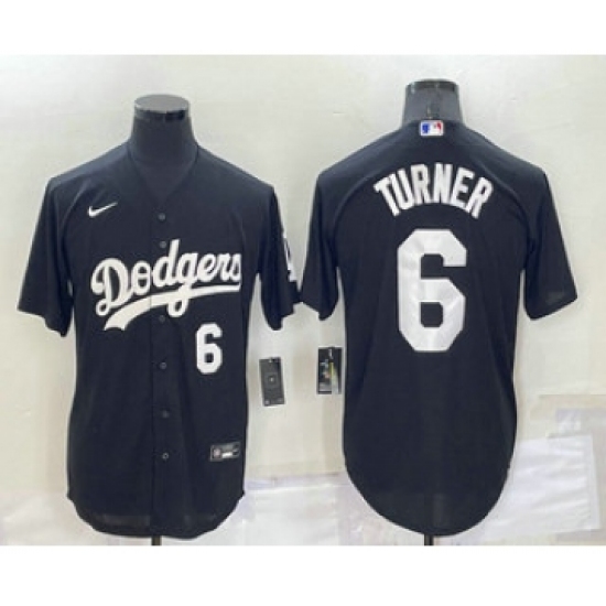 >Men's Los Angeles Dodgers #6 Trea Turner Number Black Turn Back The Clock Stitched Cool Base Jersey