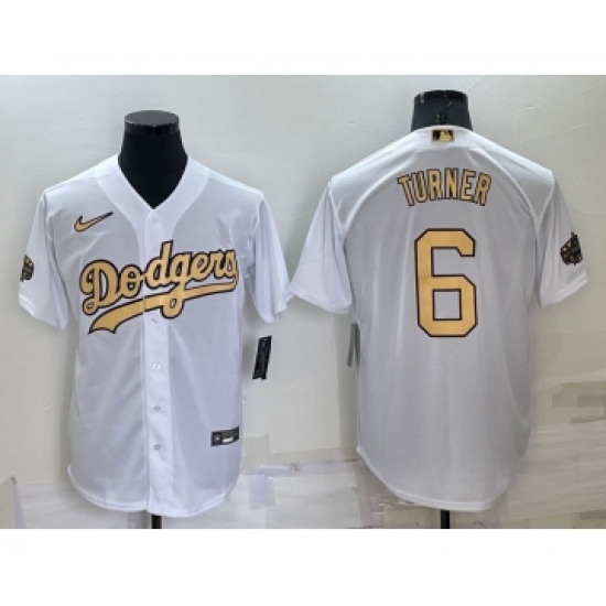 Men's Los Angeles Dodgers #6 Trea Turner White 2022 All Star Stitched Cool Base Nike Jersey