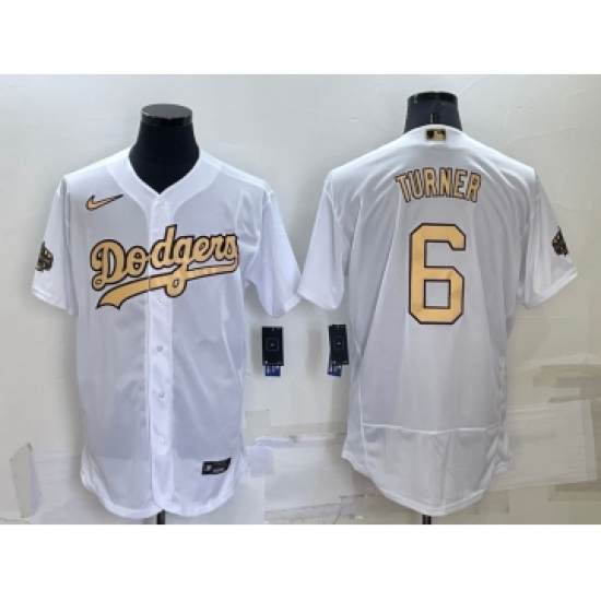 Men's Los Angeles Dodgers #6 Trea Turner White 2022 All Star Stitched Flex Base Nike Jersey