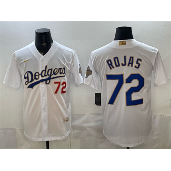 >Men's Los Angeles Dodgers #72 Miguel Rojas White 2026 Gold Collection Stadium Stitched Baseball Jersey