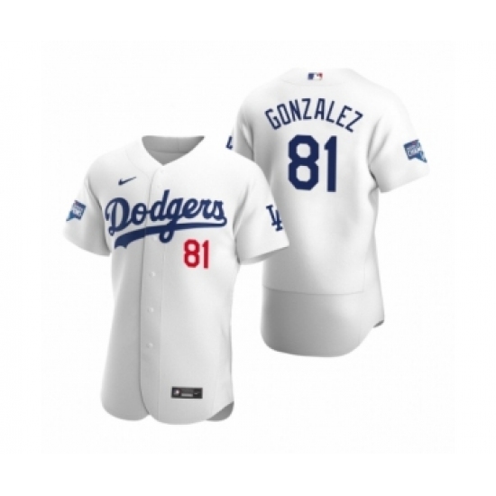 Men's Los Angeles Dodgers #81 Victor Gonzalez White 2020 World Series Champions Authentic Jersey