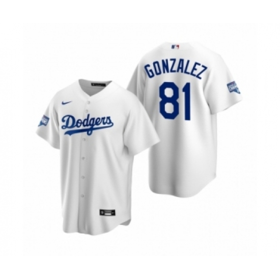 Men's Los Angeles Dodgers #81 Victor Gonzalez White 2020 World Series Champions Replica Jersey
