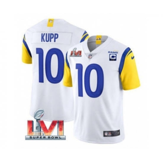 >Men's Los Angeles Rams #10 Cooper Kupp 2022 White With C Patch Super Bowl LVI Vapor Limited Jersey