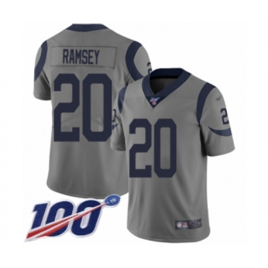 Men's Los Angeles Rams #20 Jalen Ramsey Limited Gray Inverted Legend 100th Season Football Jersey