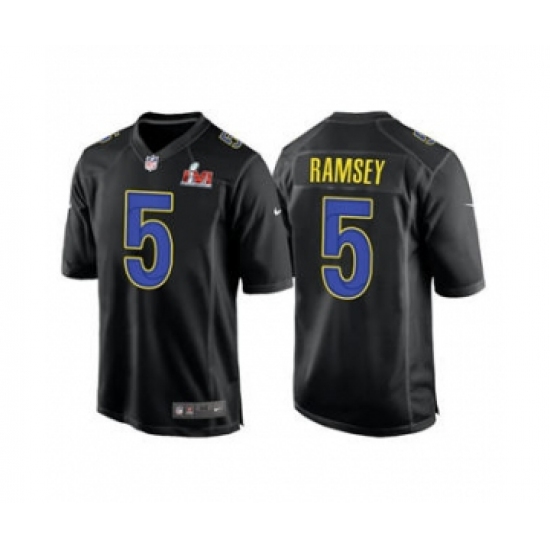 Men's Los Angeles Rams #5 Jalen Ramsey Black 2022 Super Bowl LVI Game Stitched Jersey
