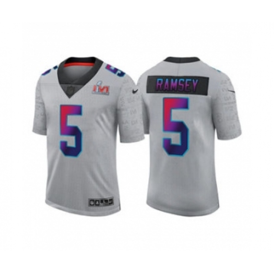 Men's Los Angeles Rams #5 Jalen Ramsey Gray 2022 Super Bowl LVI Limited Stitched Jersey