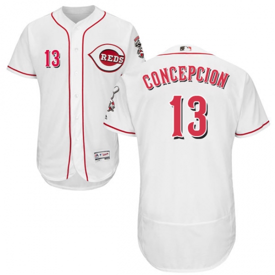 Home>MLB>Cincinnati Reds>Dave Concepcion>Men's Majestic Cincinnati Reds #13 Dave Concepcion White Home Flex Base Authentic Collection MLB Jersey