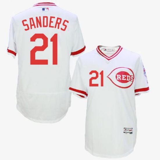 Home>MLB>Cincinnati Reds>Reggie Sanders>Men's Majestic Cincinnati Reds #21 Reggie Sanders White Flexbase Authentic Collection Cooperstown MLB Jersey