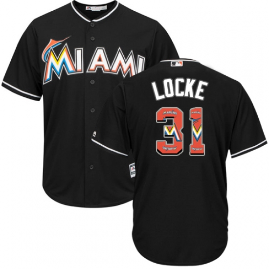 Men's Majestic Miami Marlins #31 Jeff Locke Authentic Black Team Logo Fashion Cool Base MLB Jersey