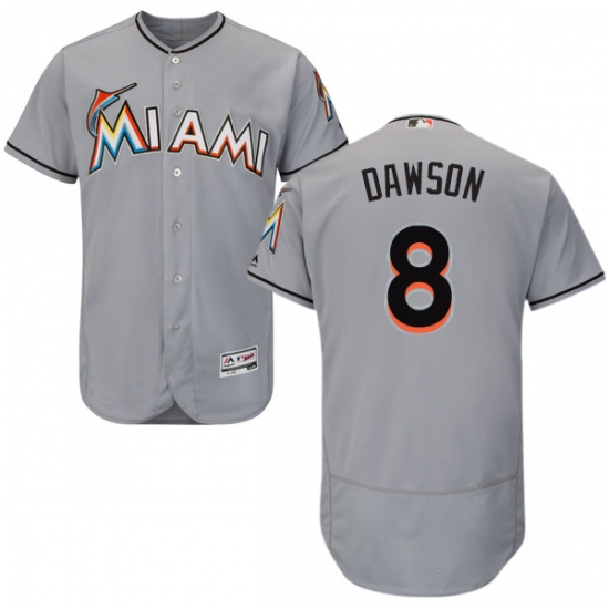 Men's Majestic Miami Marlins #8 Andre Dawson Grey Road Flex Base Authentic Collection MLB Jersey