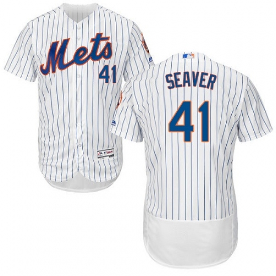 Men's Majestic New York Mets #41 Tom Seaver White Home Flex Base Authentic Collection MLB Jersey