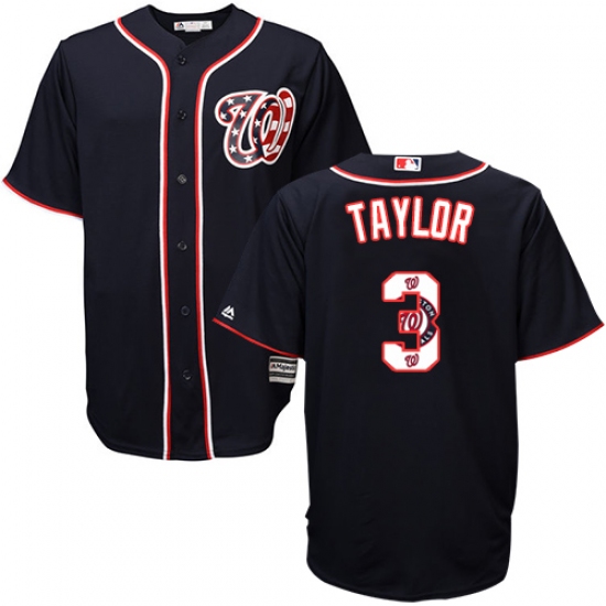Men's Majestic Washington Nationals #3 Michael Taylor Authentic Navy Blue Team Logo Fashion Cool Base MLB Jersey