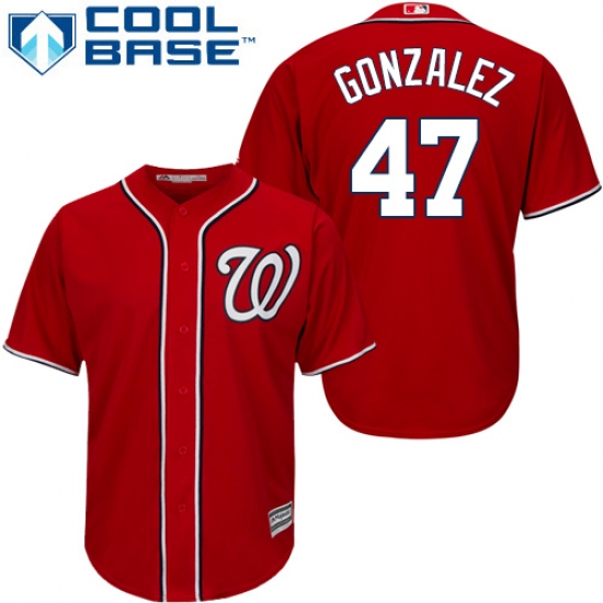 Home>MLB>Washington Nationals>Gio Gonzalez>Men's Majestic Washington Nationals #47 Gio Gonzalez Replica Red Alternate 1 Cool Base MLB Jersey