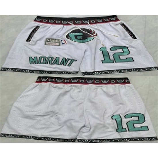 Men's Memphis Grizzlies #12 Ja Morant White 2025 Shorts (Run Small)
