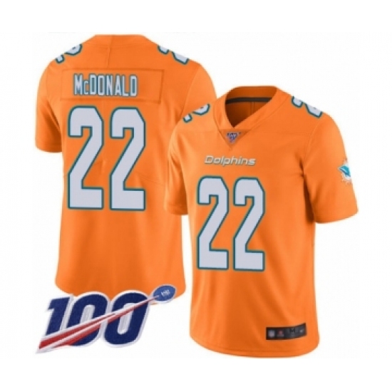 Men's Miami Dolphins #22 T.J. McDonald Limited Orange Rush Vapor Untouchable 100th Season Football Jersey