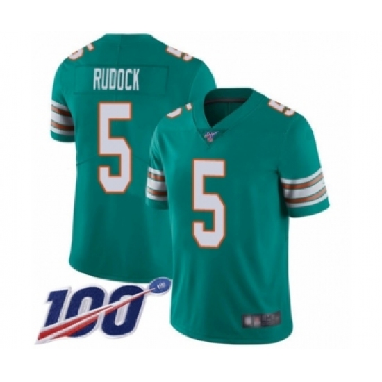 Men's Miami Dolphins #5 Jake Rudock Aqua Green Alternate Vapor Untouchable Limited Player 100th Season Football Jersey