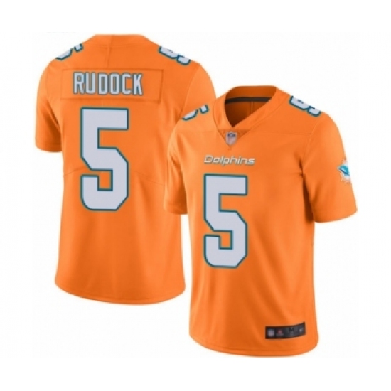 >Men's Miami Dolphins #5 Jake Rudock Limited Orange Rush Vapor Untouchable Football Jersey