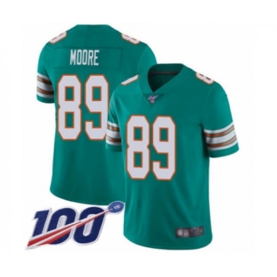 Men's Miami Dolphins #89 Nat Moore Aqua Green Alternate Vapor Untouchable Limited Player 100th Season Football Jersey