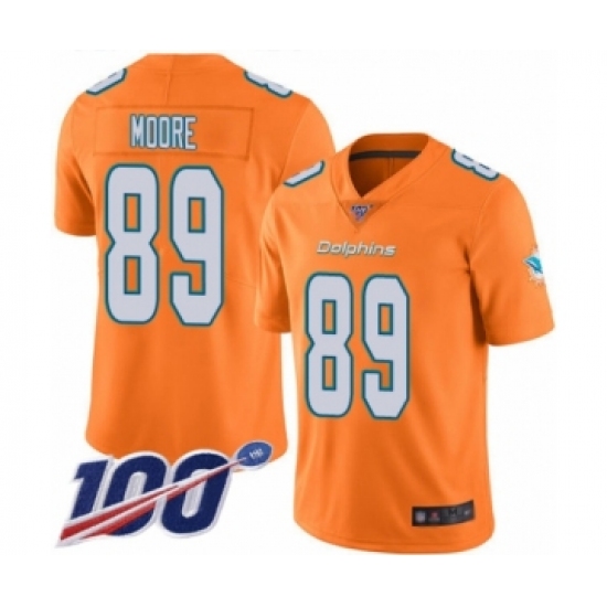Men's Miami Dolphins #89 Nat Moore Limited Orange Rush Vapor Untouchable 100th Season Football Jersey