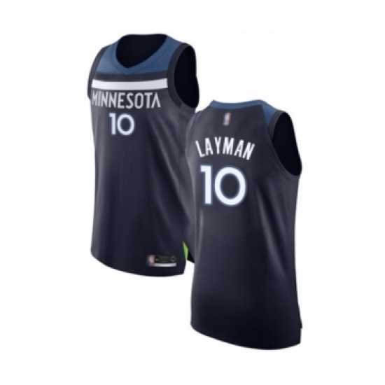 >Men's Minnesota Timberwolves #10 Jake Layman Authentic Navy Blue Basketball Jersey - Icon Edition