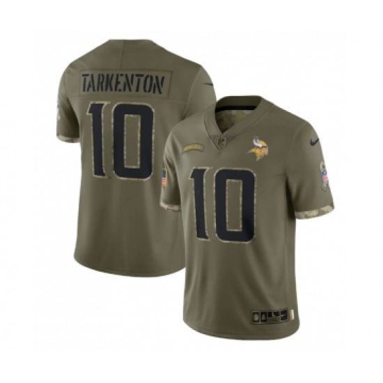 >Men's Minnesota Vikings #10 Fran Tarkenton 2022 Olive Salute To Service Limited Stitched Jersey