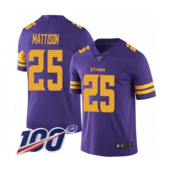 Men's Minnesota Vikings #25 Alexander Mattison Limited Purple Rush Vapor Untouchable 100th Season Football Jersey