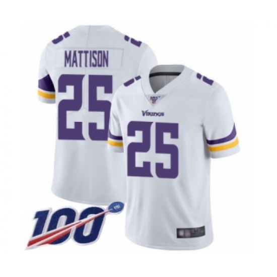 >Men's Minnesota Vikings #25 Alexander Mattison White Vapor Untouchable Limited Player 100th Season Football Jersey