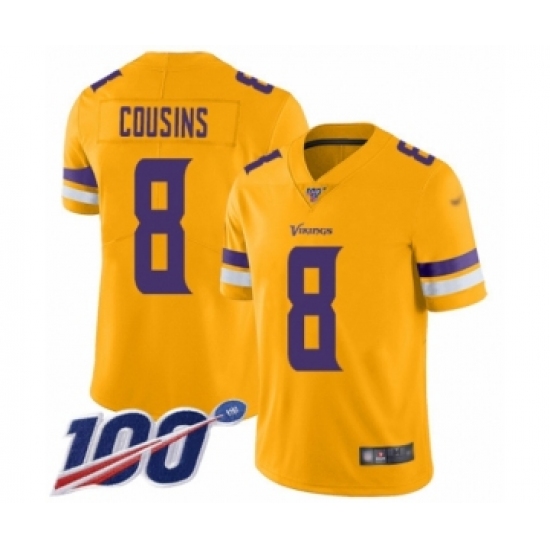 Men's Minnesota Vikings #8 Kirk Cousins Limited Gold Inverted Legend 100th Season Football Jersey