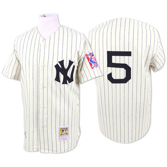 Men's Mitchell and Ness 1939 New York Yankees #5 Joe DiMaggio Replica White Throwback MLB Jersey