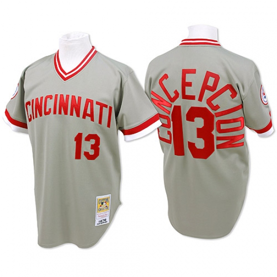 Men's Mitchell and Ness Cincinnati Reds #13 Dave Concepcion Replica Grey Throwback MLB Jersey