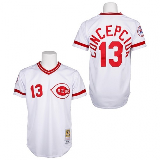 Men's Mitchell and Ness Cincinnati Reds #13 Dave Concepcion Replica White Throwback MLB Jersey