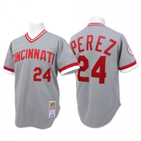 Home>MLB>Cincinnati Reds>Tony Perez>Men's Mitchell and Ness Cincinnati Reds #24 Tony Perez Authentic Grey Throwback MLB Jersey