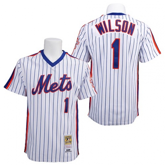 Home>MLB>New York Mets>Mookie Wilson>Men's Mitchell and Ness New York Mets #1 Mookie Wilson Authentic White/Blue Strip Throwback MLB Jersey